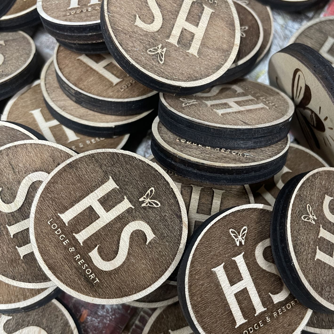 Custom engraved wooden tokens remain a core focus of the company's offerings and are widely used as drink tokens, admission tokens, promotional pieces, and keepsakes. Businesses commonly choose both round wooden tokens and custom-shaped wooden tokens to align with their branding and intended use. In addition to tokens, the company produces other custom wooden promotional items, including magnets, ornaments, coasters, and additional personalized products based on customer requests.