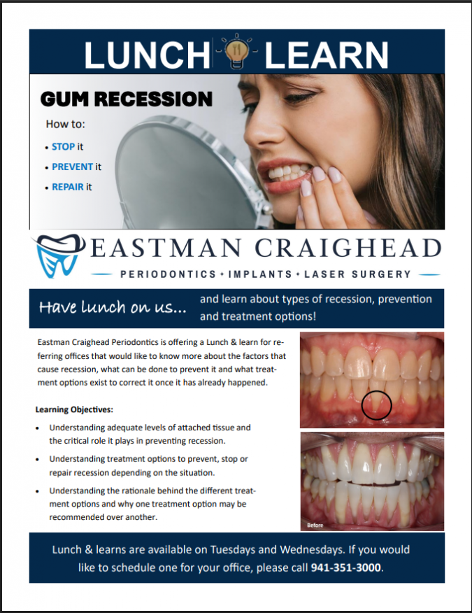 SARASOTA, Fla. - OhioPen -- Eastman Craighead Periodontics, a respected leader in periodontal and implant dentistry, has announced two major education programs for 2025: the Eastman Craighead Dental Hygiene Study Club and a Lunch & Learn Series focused on the prevention and treatment of gum recession.
