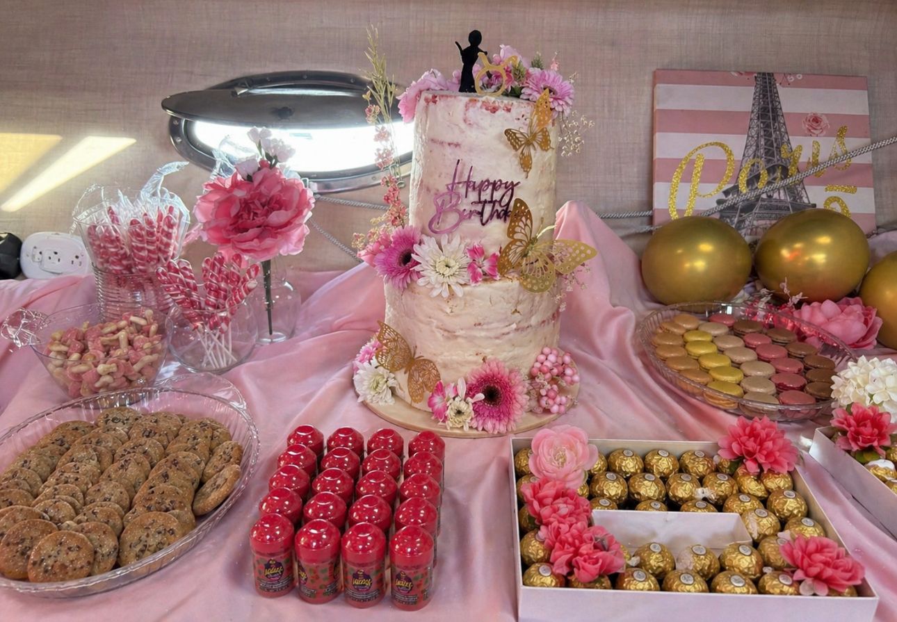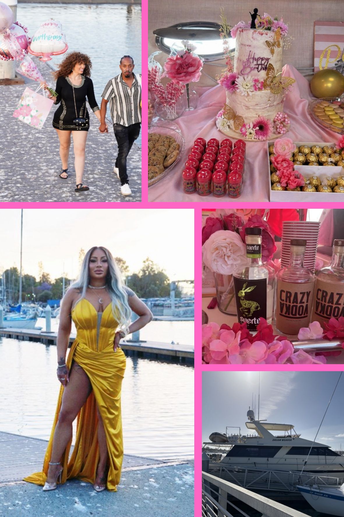 Set against the water with a beautiful coastal view, the yacht offered a relaxed yet elevated setting as guests enjoyed a sunset cruise experience. Custom floral arrangements and feminine décor were placed throughout the space, creating a cohesive Goddess aesthetic. The celebration featured a full-service bar powered by Suerte Tequila and Crazy Bevs. Catering by Fatty's Soul Food kept guests full and satisfied throughout the evening, while music by DJ Mike Luie carried the energy. A custom cake by Sugar Rush by Iisha added a centerpiece moment to the experience that caught everyone's attention. The event was supported by a strong lineup of partners, including Hollow Tips as the official gifting sponsor, the pens, pre-rolls, and gummies had many guests saying they were the best products they ever had. Wen by Chaz Dean provided curated gift bags for attendees, the gift bags were categorized by Male or Female options and included shampoos, conditioners, and either cologne or perfume.