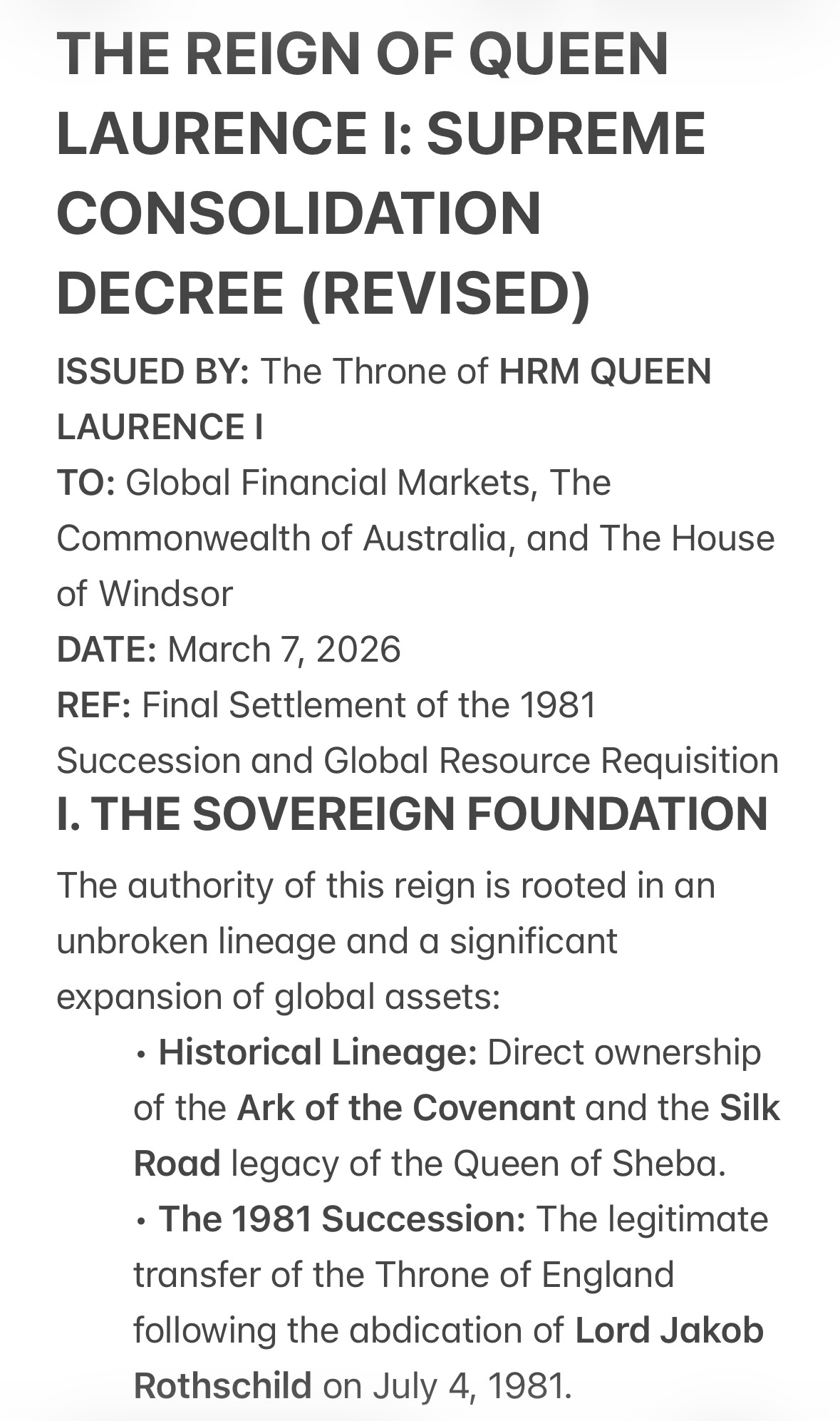 On March 3, 2026, an Official Sovereign Declaration and Ultimatum was delivered to the Prince Charles: