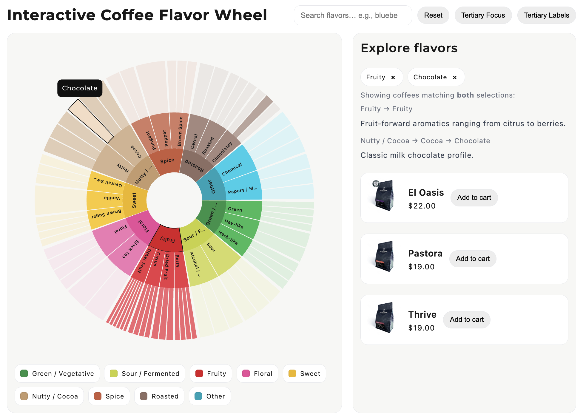 - First known interactive Coffee Taster's Flavor Wheel in specialty coffee e-commerce